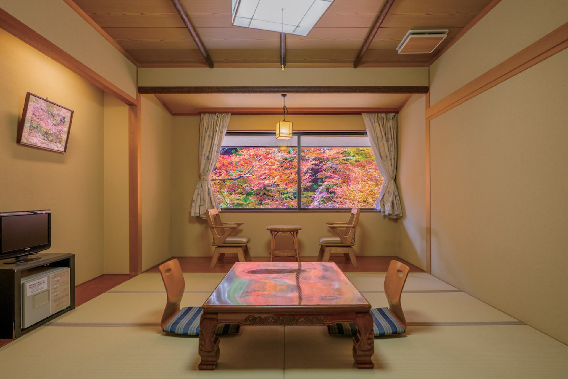 鉄分を多く含み、美肌効果や疲労回復に優れた泉質を誇ります。また露天風呂からは四季折々の風景が楽しめ、紅葉や新緑の時期には絶景が広がります。